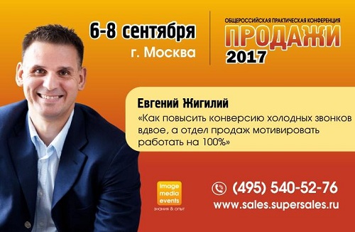 С таким докладом выступит бизнес-тренер Евгений Жигилий на Общероссийской практической конференции «ПРОДАЖИ-2017», которая состоится в Москве 6-8 сентября.
